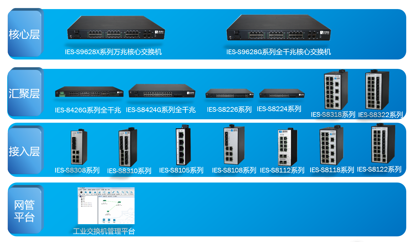工业以太网交换机系列产品,精心打磨,以卓越的硬件品质和丰富的软件功能以及产品形态,为工业企业提供稳定、可靠的网络传输解决方案。