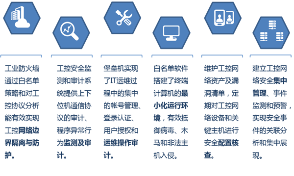 还应部署工控安全监测与审计系统。及时发现、追踪网络遭受病毒和黑客攻击的事件,使维护人员能够进行故障点查询和原因分析,并采取应急响应措施。